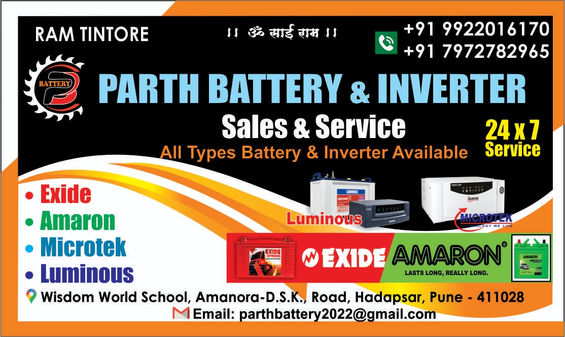 Parth Battery and Inverter - Hadapsar, Pune is now online. Shop with us anytime, anywhere on your fingertips. We are categorized under • Battery Dealers • Battery Dealers - Amaron • Battery Dealers - Exide • Car Battery Dealers • Car Battery Dealers - Amaron • Automobile Battery Dealers - Amaron • UPS Dealers • UPS Battery Dealers • Ups Dealers - Luminous • UPS Battery Dealers - Exide You can choose from a wide range of superior products offered ... View More